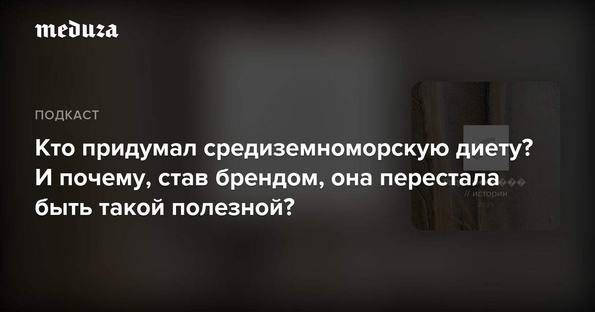 Послушайте аудиоверсию пересказа материала Politico об истории «средиземноморской диеты» — и о том, как концепцию эксплуатируют бренды и политики. Прочитать текст можно здесь.
