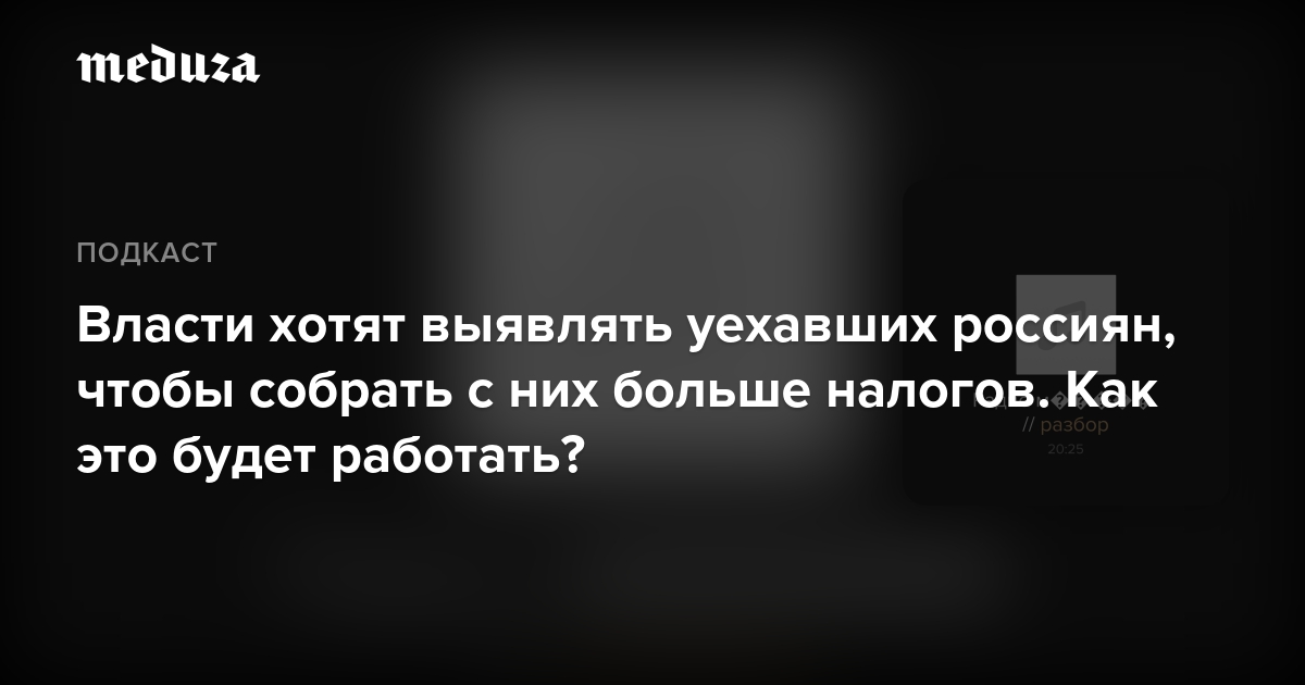 Как именно банки будут выявлять нерезидентов? Можно ли будет спрятаться от налогового надзора? Почему вообще власти так озаботились этим вопросом и что еще они придумали, помимо слежки через банковские приложения? Послушайте аудиоверсию разбора «Медузы». Прочитать карточки можно здесь.