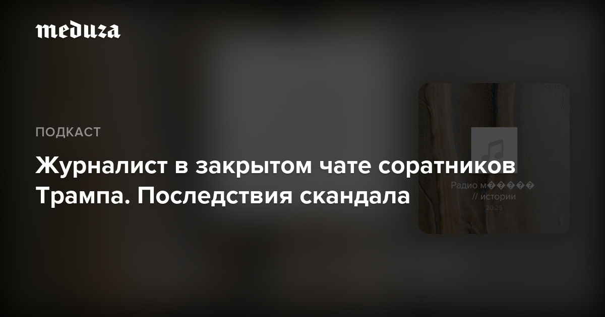 Как главный редактор The Atlantic оказался в чате для координации удара по хуситам? Почему США решили нанести этот удар? И что по итогам скандала предпримет Трамп? Главное об инциденте, который ошарашил Вашингтон, — на «Радио Медуза». Прочитать эту историю можно здесь.