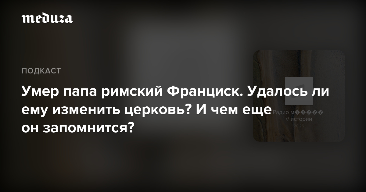 Папа римский Франциск стал первым в истории папой из Нового Света и первым иезуитом на этом посту. Задача перед ним стояла неимоверно сложная — реформировать всю церковь как институт. Справился ли он? И чем еще запомнится?
