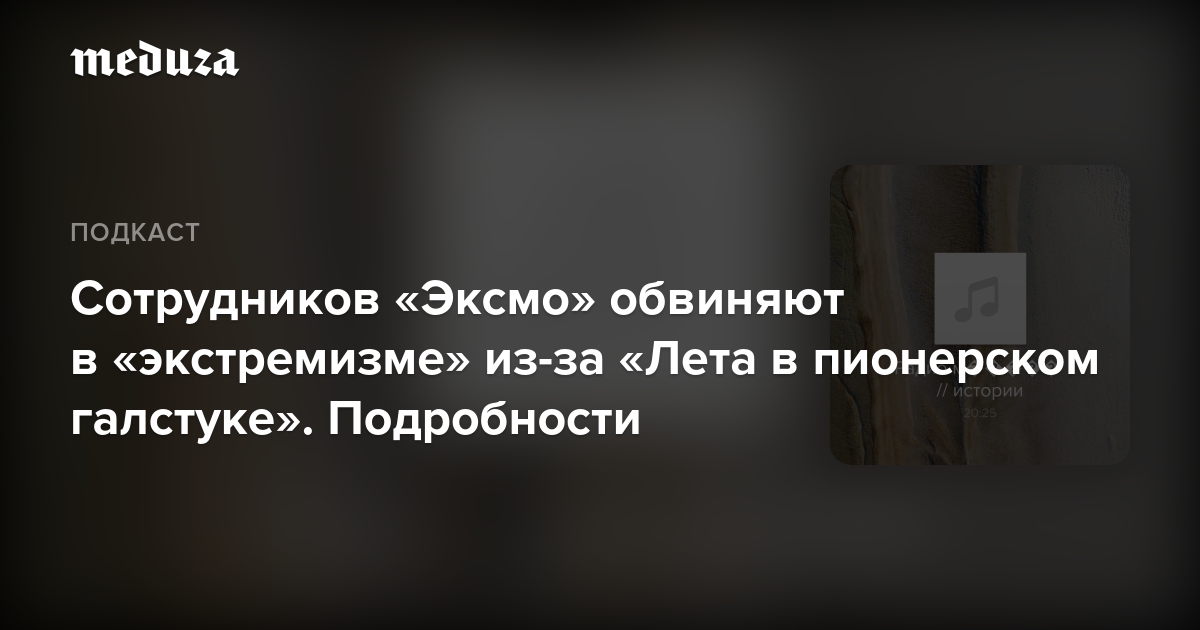 Сотрудников крупнейшего российского книжного издательства «Эксмо» обвиняют в «экстремизме» из-за книги «Лето в пионерском галстуке» и другой квир-литературы. В рамках расследования уголовного дела об экстремизме в Москве задержали около 10 человек: это бывшие и действующие работники редакций Individuum и Popcorn Books, которые входят в «Эксмо». Формальным поводом для обысков и задержаний стала именно книга «Лето в пионерском галстуке».