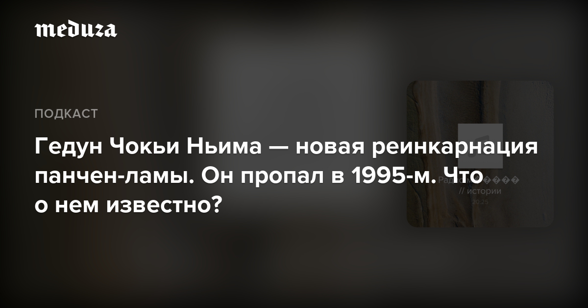 Что известно о судьбе Гедуна Чокьи Ньимы? И почему будущее буддизма под угрозой? Послушайте аудиоверсию материала, который для «Медузы» написал китаист Алексей Чигадаев.