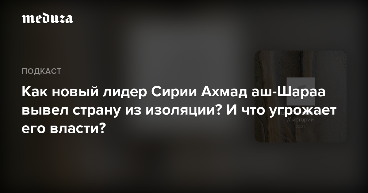 Еще недавно за поимку Ахмада аш-Шараа США предлагали 10 миллионов долларов, а теперь ему жмет руку Дональд Трамп. Что помогло бывшему боевику стать удобной фигурой для всех мировых сил? И почему даже нынешний уровень легитимации сирийских властей не гарантирует стабильности? Послушайте аудиоверсию материала востоковеда Никиты Смагина. Прочитать текст можно здесь.