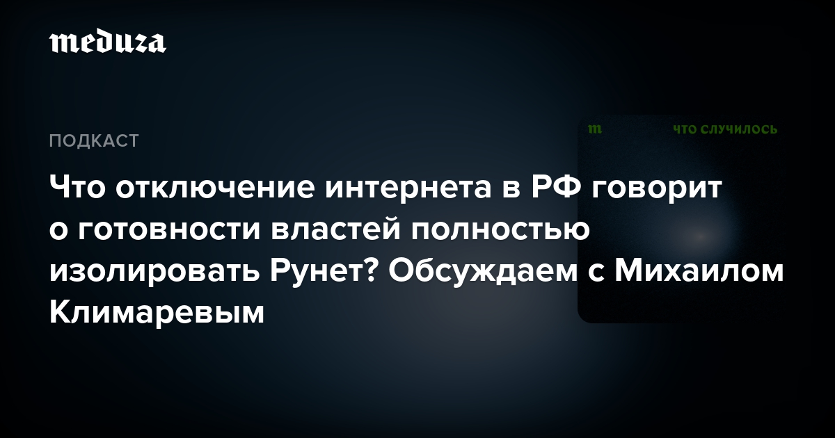 Для чего власти в России так часто отключают мобильный интернет? И что это говорит об их готовности изолировать Рунет совсем? Владислав Горин обсуждает с Михаилом Климаревым, главой «Общества защиты интернета».