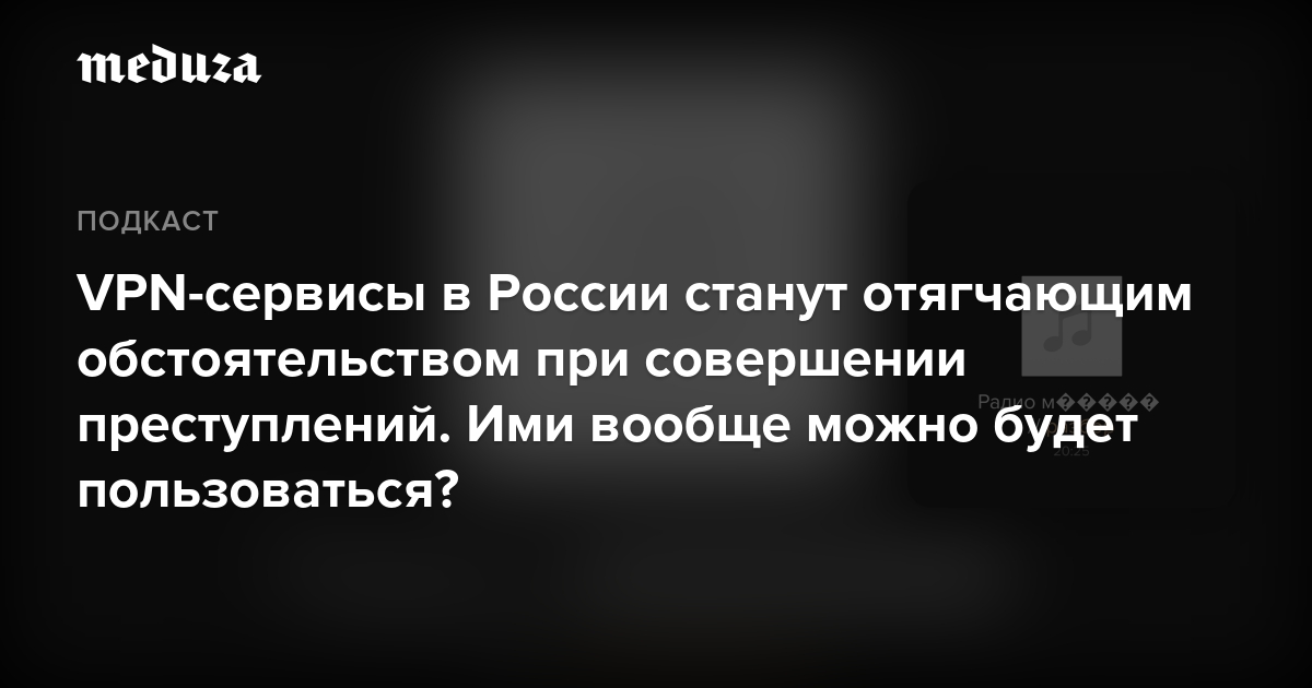 Депутаты Госдумы приняли пакет поправок в Уголовный кодекс РФ: с осени 2025 года использование VPN станет отягчающим обстоятельством при совершении преступлений. Как будет работать новая норма? Сам по себе обход блокировок не станет преступлением? Аудиоверсия разбора «Медузы». Прочитать карточки можно здесь.