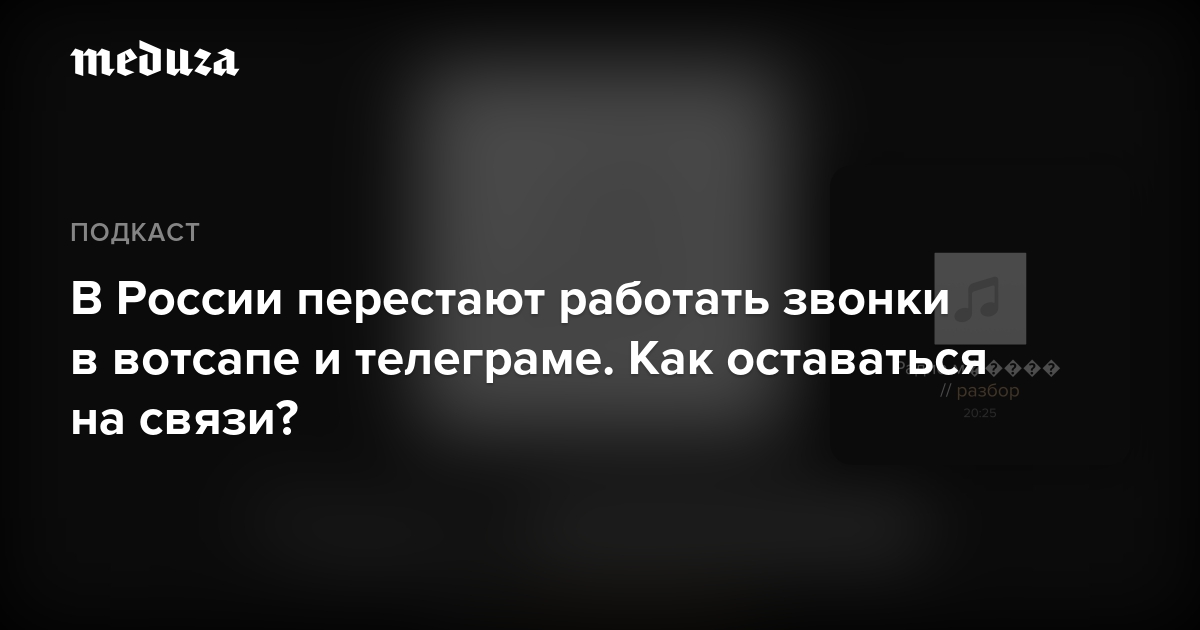 Зачем власти блокируют звонки через мессенджеры? Как это технически возможно? И какие альтернативы вотсапу и телеграму можно использовать, чтобы оставаться на связи с близкими? Послушайте аудиоверсию разбора «Медузы». Прочитать карточки о возможном запрете звонков можно здесь, а материал об альтернативах — здесь.