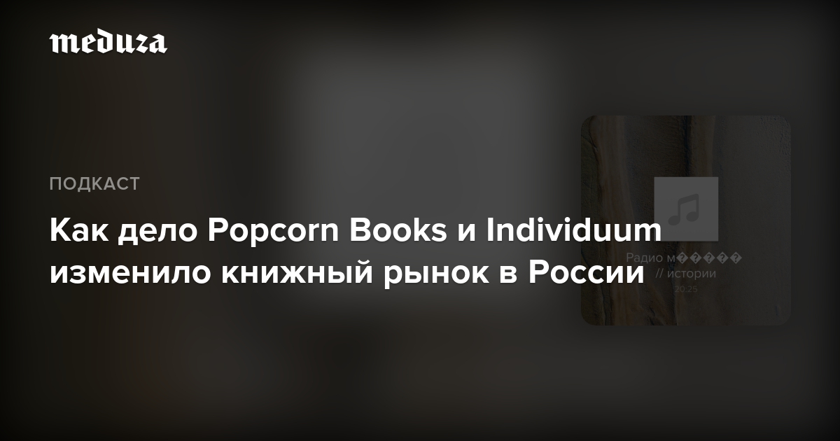 «Дело издателей» считается переломным для всей индустрии. Послушайте аудиоверсию материала о том, как холдинг «Эксмо-АСТ» пытался заработать на покупке Individuum и Popcorn Books — и одновременно не стать мишенью силовиков. Прочитать текст спецкора Кристины Сафоновой можно здесь.