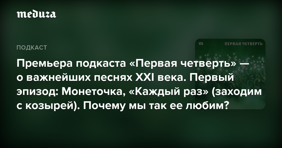 🎙 «Первую четверть» можно слушать на сайте «Медузы», в нашем приложении (советуем! Оно умеет обходить блокировки) и на других аудиоплатформах.