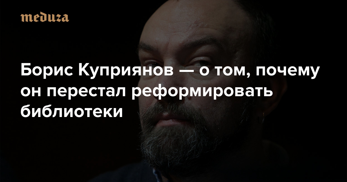 Вскоре после увольнения начальника департамента культуры Москвы Сергея Капкова от сотрудничества со столичными властями отказался и Борис Куприянов. Один из соучредителей магазина «Фаланстер» и самый известный в России книготорговец Куприянов был одним из руководителей Московского библиотечного центра при правительстве столицы — и пытался на протяжении двух лет реформировать московские публичные библиотеки. В интервью специальному корреспонденту «Медузы» Андрею Козенко Куприянов признался, что многие после его ухода вздохнули с облегчением, и описал свою идеальную библиотеку, в которой «прекрасные московские бабушки на волонтерских началах помогают детям мигрантов делать домашнее задание».