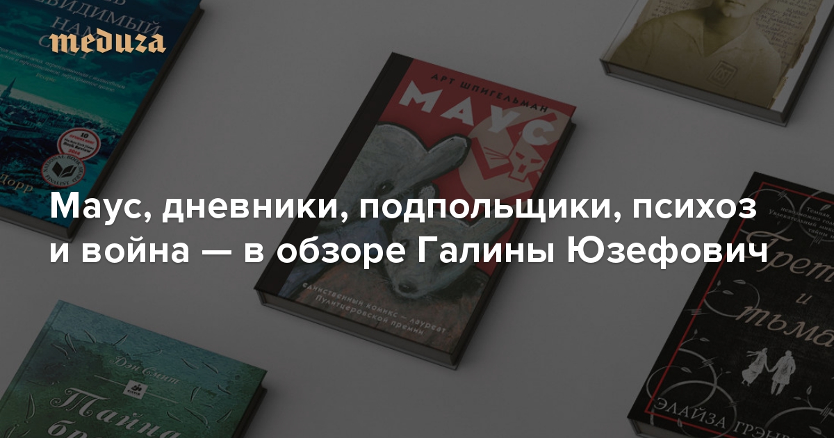 Еженедельно литературный критик Галина Юзефович рассказывает на «Медузе» об интересных и важных книгах, изданных в России. В нынешний обзор включены пять новых (или относительно новых) книг о Второй мировой войне — «Маус» Арта Шпигельмана, «Где вы, мои родные…» Александры Михалевой, «Тайна брата» Дэна Смита, «Гретель и тьма» Элайзы Гренвилл, «Весь невидимый миру свет» Энтони Дорра.