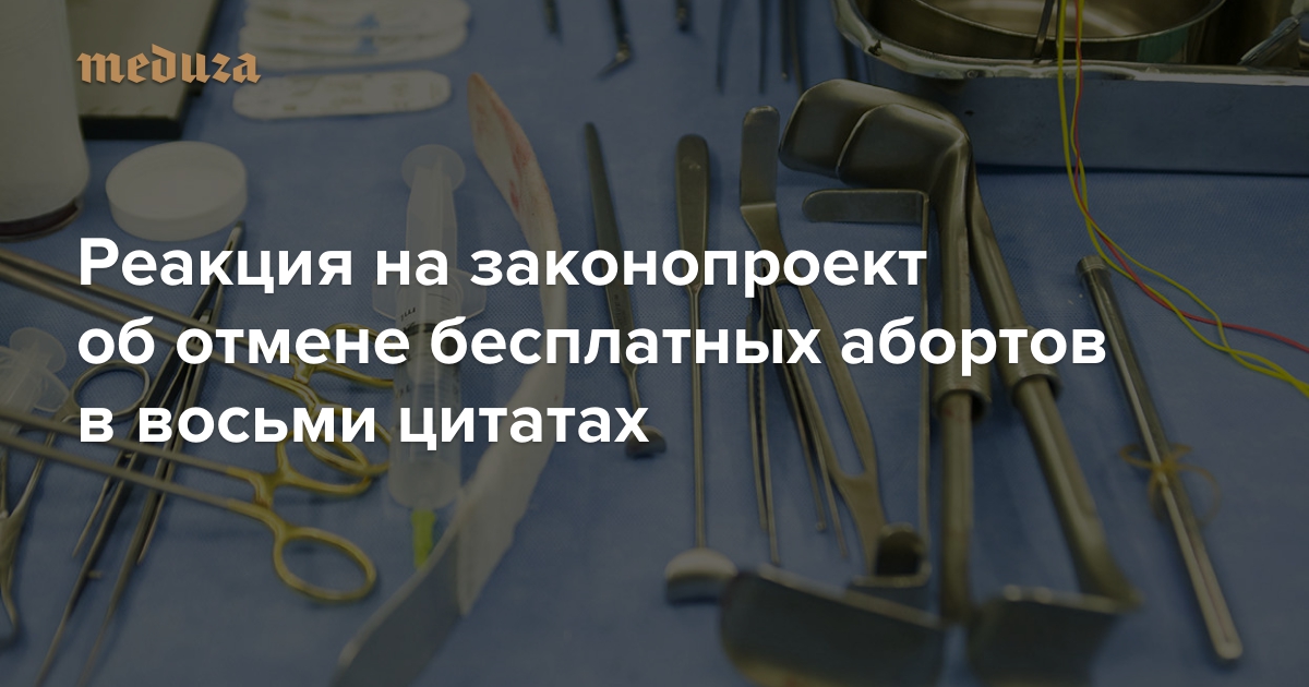 19 мая в Госдуму был внесен законопроект, по которому операции по искусственному прерыванию беременности выводятся из системы обязательного медицинского страхования, а также запрещаются аборты в частных клиниках. Едва ли не впервые за последние годы уже внесенный в Госдуму законопроект вызывал недовольство в правительстве и Совете Федерации. «Медуза» собрала высказывания депутатов, чиновников и экспертов о законопроекте в одном тексте.