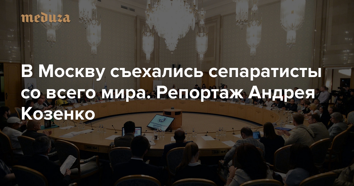 В Москве в воскресенье, 20 сентября, прошла «экспертная конференция» «Диалог наций. Право народов на самоопределение и построение многополярного мира». По сути это был парад непризнанных суверенитетов со всего мира — от государства Боринкен, претендующего на территорию Пуэрто-Рико, до Донецкой и Луганской народных республик. Представители сепаратистских организаций рассказали, как они мирным (в основном) путем собираются прийти к власти. Экспертная дискуссия состоялась на деньги Кремля в принадлежащем управлению делами президента РФ «Президент-отеле»; при этом в России не просто сепаратизм, но даже призывы к нему являются уголовным преступлением, за которое дают реальные сроки. За конференцией наблюдал специальный корреспондент «Медузы» Андрей Козенко.