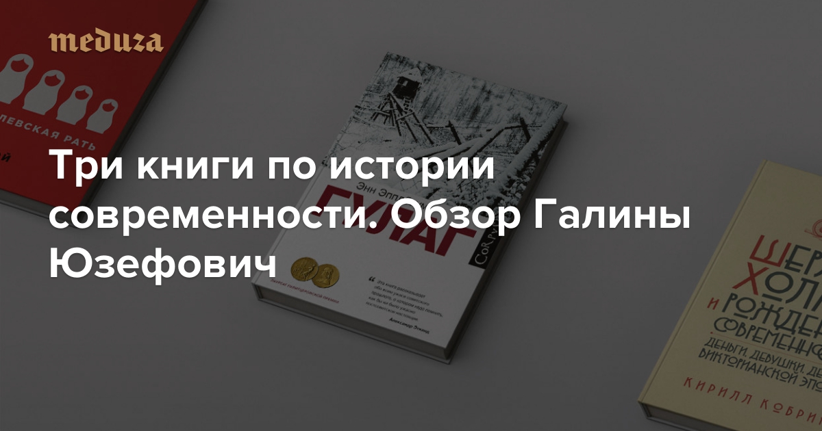Еженедельно литературный критик Галина Юзефович рассказывает на «Медузе» о самых интересных книжных новинках, изданных в России. В нынешнем обзоре представлены три книги — «Краткая история современной России» Михаила Зыгаря, «ГУЛАГ» Энн Эпплбаум и «Шерлок Холмс и рождение современности» Кирилла Кобрина.