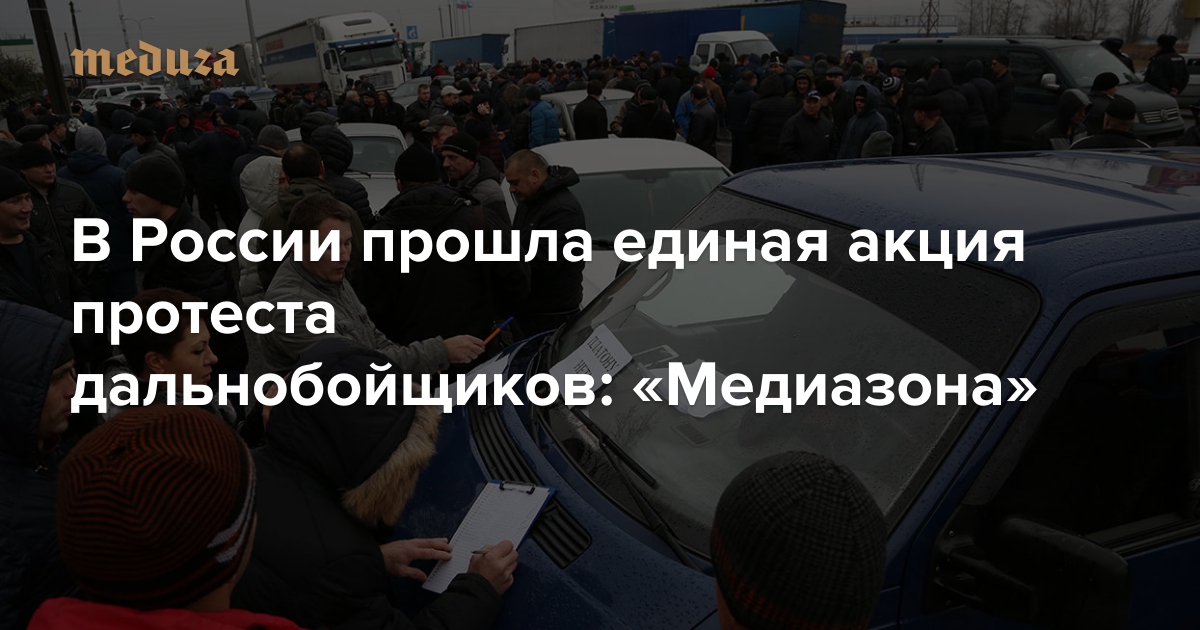В четверг 19 ноября в нескольких десятках российских городов прошли акции протеста дальнобойщиков, недовольных вводом платы за проезд грузовиков по федеральным трассам. Система по взиманию денег с водителей, получившая название «Платон», заработала 15 ноября — причем после первых протестов власти пообещали, что до марта 2016 года штрафы за неиспользование системы будут взимать только в Московской области. Оказалось, что штрафы уже берут и в других регионах — это вызвало дополнительное недовольство дальнобойщиков. За акциями протеста следила «Медиазона».