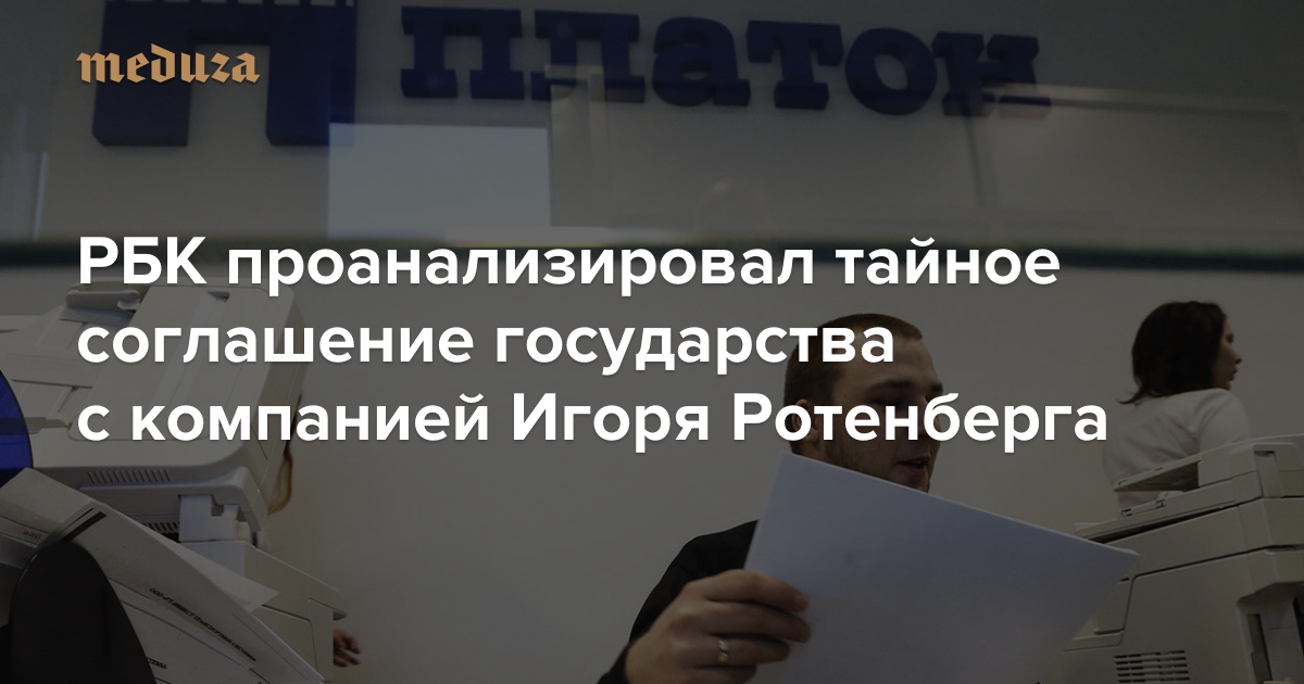 В России с 15 ноября работает система «Платон», через которую с тяжелых грузовиков взимают плату за проезд по федеральным трассам. Введение этой системы привело к массовым протестам дальнобойщиков; не только из-за того, что это дополнительные расходы, но и потому, что оператор «Платона» наполовину принадлежит Игорю Ротенбергу. Соглашение между государством и компанией-оператором «Платона» власти публиковать отказывались, ссылаясь на коммерческую тайну. Однако кто-то анонимно прислал этот документ Фонду борьбы с коррупцией. Подлинность соглашения не подтверждена, но на нем стоят подписи сторон — главы Росавтодора и руководителя «РТ-Инвеста» (оператор «Платона»). РБК проанализировал документ и выяснил, сколько «РТ-Инвест», а значит и сын близкого к Владимиру Путину бизнесмена Аркадия Ротенберга, заработает на «Платоне».