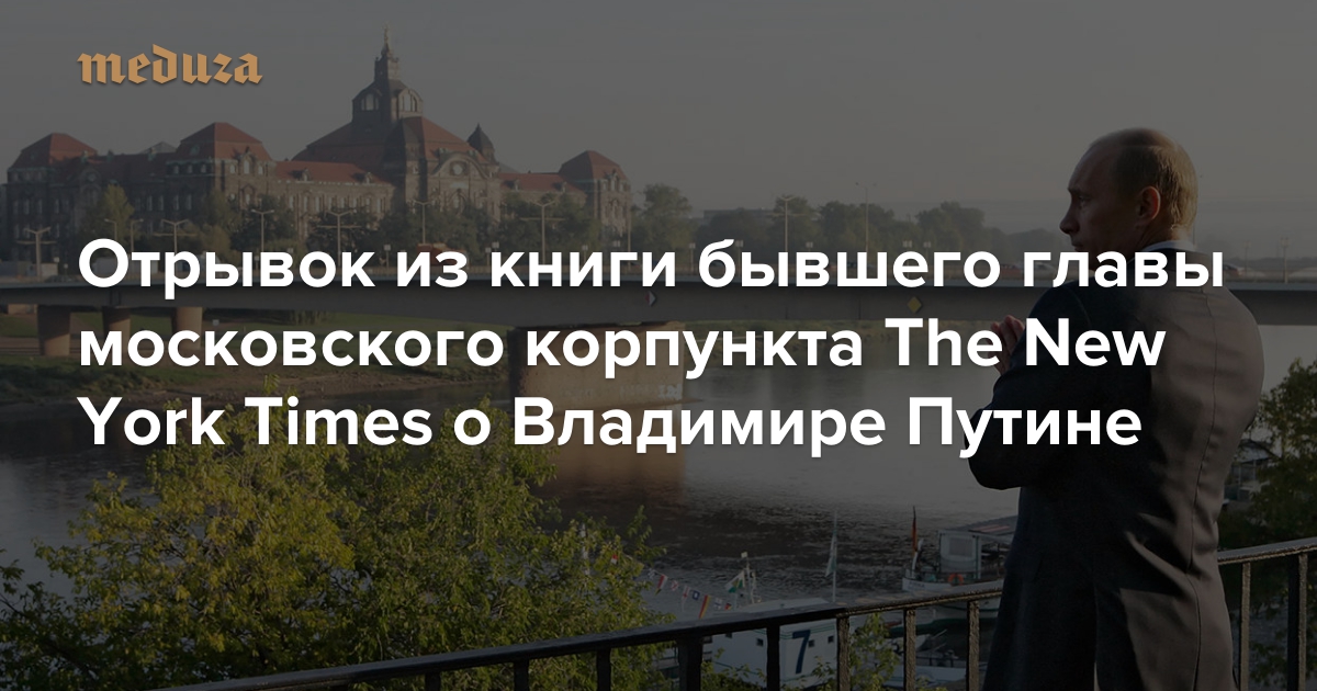 Осенью 2015 года в США вышла книга Стивена Ли Майерса «Новый царь. Восхождение и правление Владимира Путина» — газета The Washington Post назвала ее «самой сильной из существующих сегодня» биографий президента РФ. Стивен Ли Майерс — журналист The New York Times, долгое время возглавлявший московское бюро газеты. В «Новом царе» описывается жизнь и эволюция политических взглядов Владимира Путина; президент России представлен в книге как расчетливый и амбициозный политик, который для достижения целей пользуется всеми доступными средствами. «Медуза» публикует перевод отрывка из третьей главы биографии, посвященного последним дням работы Путина в советской разведгруппе в Дрездене.