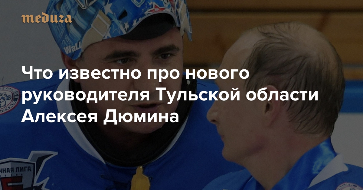 В начале февраля 2016 года Владимир Путин подписал указ о досрочной отставке губернатора Тульской области Владимира Груздева. Его место — пока в качестве и. о. — занял Алексей Дюмин, прежде работавший заместителем министра обороны России. Дюмин — человек не публичный (достаточно сказать, что на сайте РИА Новости его фамилия впервые упоминается в январе 2016-го, ТАССа — в феврале); известен он, прежде всего, тем, что играет в хоккей с президентом. «Медуза» изучила доступные публикации о Дюмине и собрала все, что о нем известно, в одном месте.