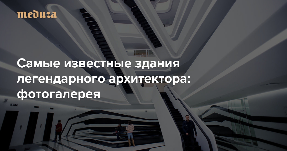 В Майами 30 марта в возрасте 65 лет умерла британский архитектор иракского происхождения Заха Хадид — первая женщина-обладательница Притцкеровской премии (2004), лауреат престижной британской премии Стирлинга. Хадид — один из самых прославленных современных архитекторов, поклонница русского конструктивизма, ученица Рема Колхаса, основательница своего бюро Zaha Hadid Architects, построившего десятки неофутуристических объектов по всему миру. «Медуза» публикует фотогалерею самых известных работ Захи Хадид.