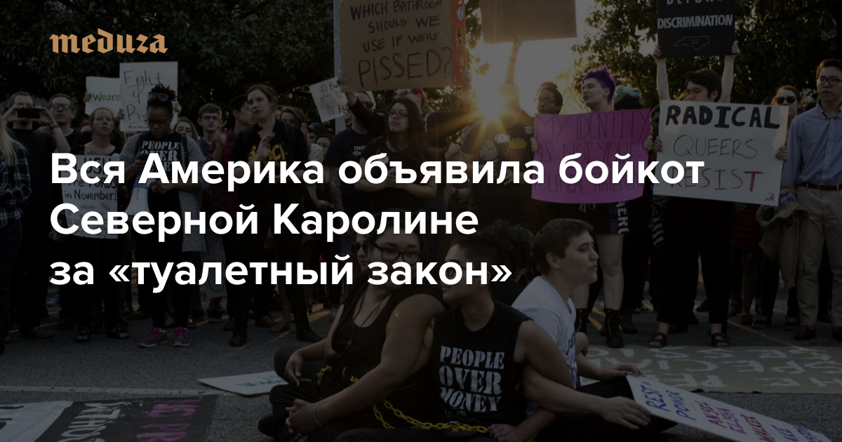 С конца марта американская общественность и крупнейшие компании протестуют против закона в Северной Каролине, ущемляющего права трансгендеров. С требованием отменить его выступили Google, Twitter, Apple, Facebook, а также многие ведущие американские газеты; соседние штаты запретили госслужащим ездить в Северную Каролину без особой надобности. «Медуза» рассказывает, почему этому штату объявили национальный бойкот.