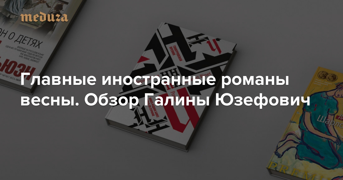 Еженедельно литературный критик Галина Юзефович рассказывает на «Медузе» о самых интересных книгах, изданных в России. В нынешнем обзоре — три важных переводных романа весны: «Закон о детях» Иэна Макьюэна, «HHhH» Лорана Бине и «Шарлотта» Давида Фонкиноса.