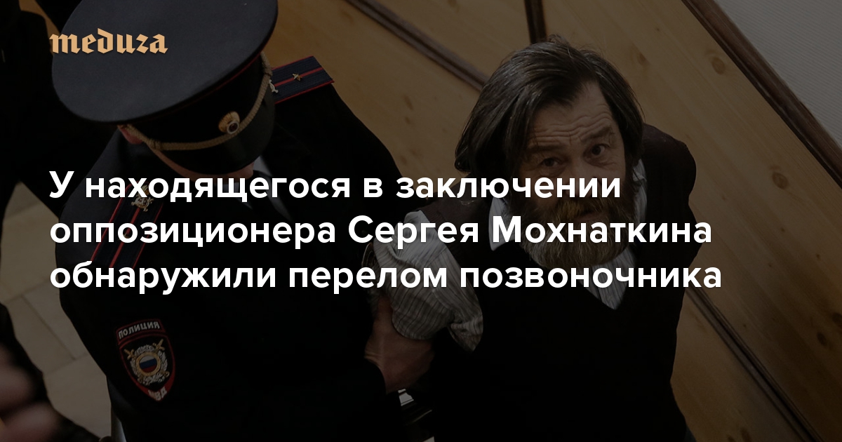 У оппозиционера Сергея Мохнаткина, отбывающего в колонии наказание за нападение на полицейских и обвиняющегося в оскорблении представителя власти, обнаружен перелом позвоночника. Об этом свидетельствуют данные судмедэкспертизы, оказавшиеся в распоряжении французской радиостанции RFI. Общественный защитник Владимир Степанов утверждает, что оппозиционера избили сотрудники Федеральной службы исполнения наказаний (ФСИН). В ведомстве это отрицают: к Мохнаткину просто «была применена сила в виде загиба рук за спину». «Медуза» рассказывает, что случилось с Сергеем Мохнаткиным.