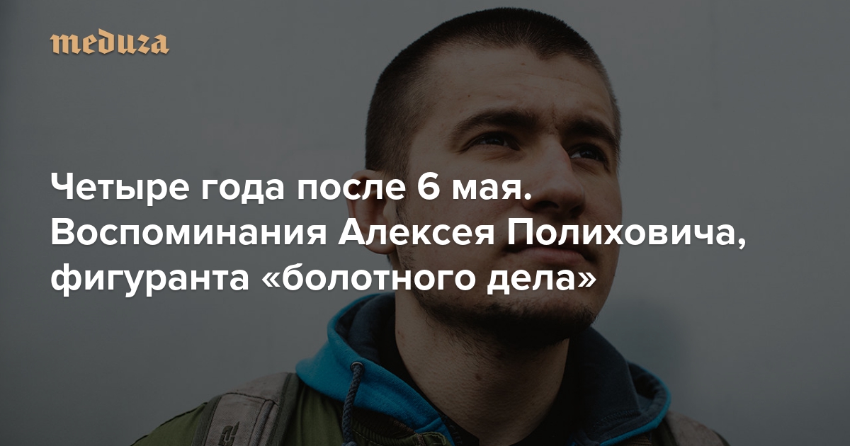 6 мая 2012 года на Болотной площади в Москве произошли столкновения между полицией и участниками мирного шествия «За честные выборы». В конце мая начались первые аресты по «болотному делу» — самому крупному политическому процессу со времен дела ЮКОСа. «Болотное дело» продолжается по сей день: 35-й фигурант Максим Панфилов был взят под стражу в апреле 2016-го. Одним из первых фигурантов дела был анархист Алексей Полихович. Его арестовали в июле 2012 года, а в феврале 2014-го приговорили к трем с половиной годам колонии. В октябре 2015-го он был освобожден условно-досрочно. По просьбе «Медузы» Полихович написал свои воспоминания о событиях 6 мая, аресте, пребывании в СИЗО и суде.