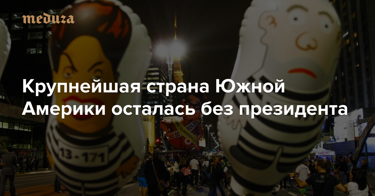 7. Исполнять обязанности президента до следующих выборов в 2018 году будет вице-президент Мишел Темер. Они с Руссеф из разных партий, у них не самые простые отношения, хотя на выборы они шли вместе. Важно другое: репутация у Темера тоже не безупречная — его недавно оштрафовали за нарушение правил проведения предвыборной кампании (он потратил на нее больше денег, чем положено).