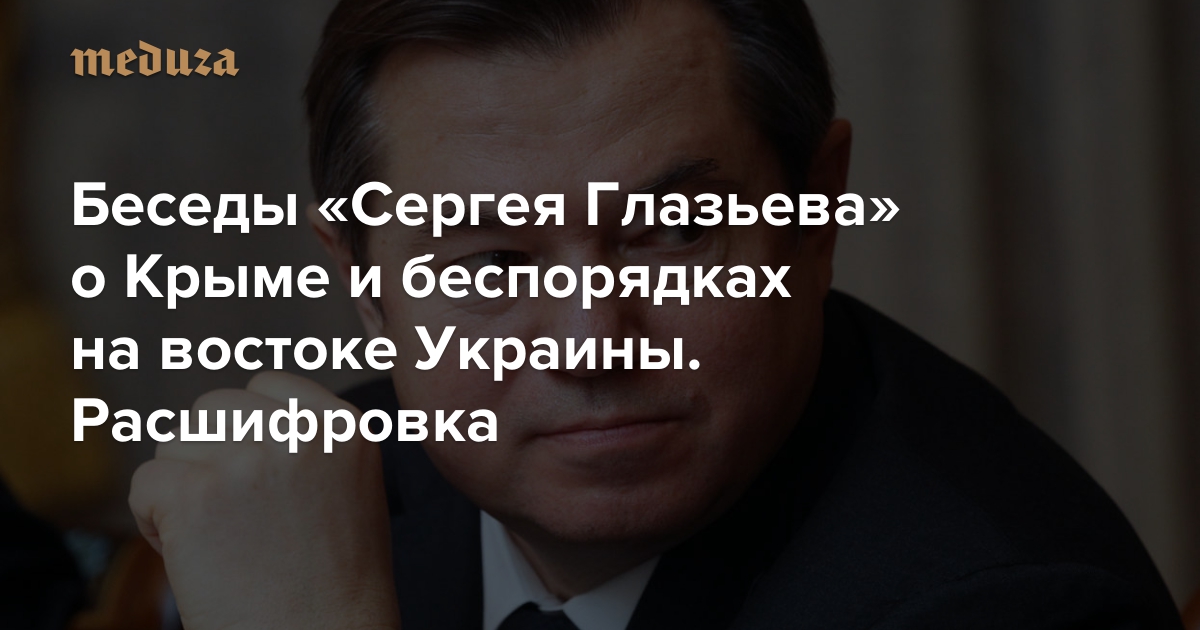 Генпрокуратура Украины опубликовала записи разговоров, в ходе которых, как утверждается, советник российского президента Сергей Глазьев обсуждает с собеседниками массовые акции на Украине и присоединение Крыма к России. С человеком, которого Генпрокуратура считает депутатом Госдумы Константином Затулиным, «Глазьев» говорит о финансировании людей, захватывающих государственные здания; а с «главой Крыма Сергеем Аксеновым» спорит по поводу формулировок вопросов на референдуме о присоединении полуострова к России. «Медуза» публикует расшифровку этих бесед.