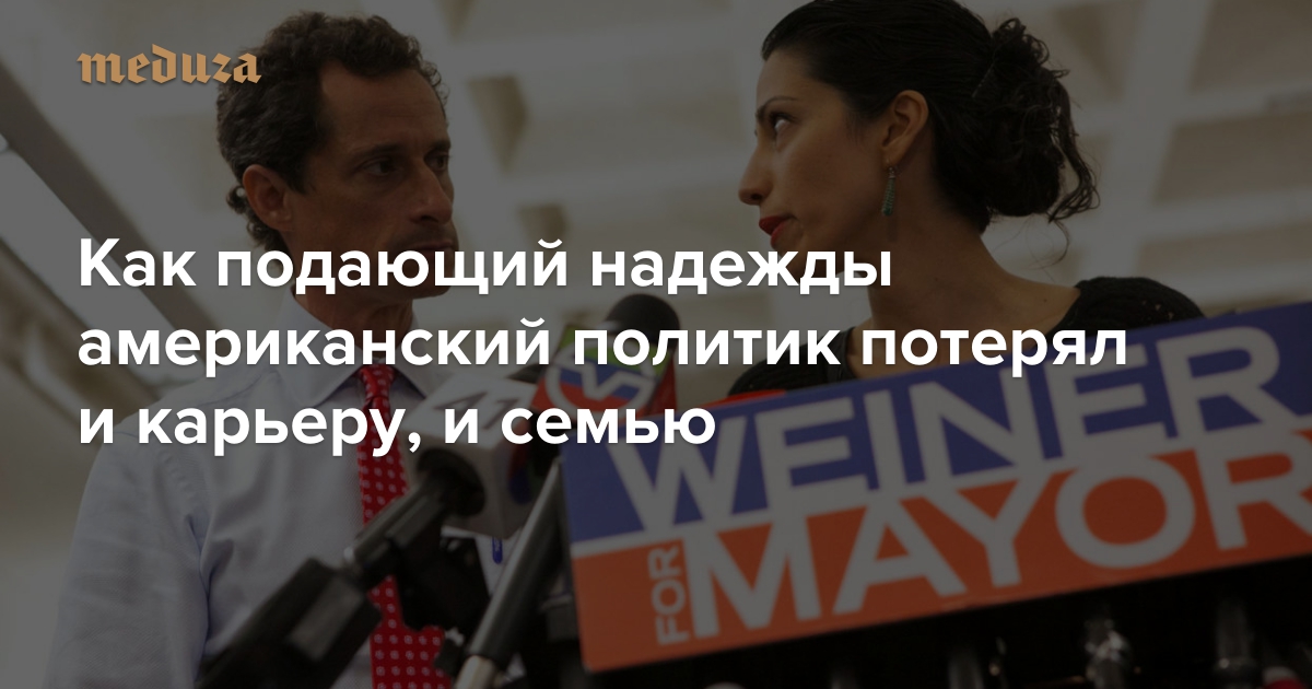 Таблоид The New York Post в воскресенье опубликовал компрометирующие снимки нью-йоркского политика Энтони Винера — издание напечатало несколько полуголых селфи, которые 51-летний экс-конгрессмен отправлял виртуальной знакомой. Этот случай мог бы считаться рядовым, если бы не несколько обстоятельств. Во-первых, неосторожный секстинг уже оборачивался для Винера карьерным крахом, причем дважды — о склонности политика к виртуальным романам даже сняли документальный фильм. Во-вторых, после третьего скандала от Винера ушла жена — советница Хиллари Клинтон Хума Абедин. «Медуза» рассказывает главное о политической карьере Энтони Винера.