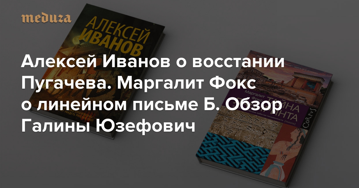 Алексей Иванов о восстании Пугачева. Маргалит Фокс о линейном письме Б Исторический нон-фикшн: обзор Галины Юзефович