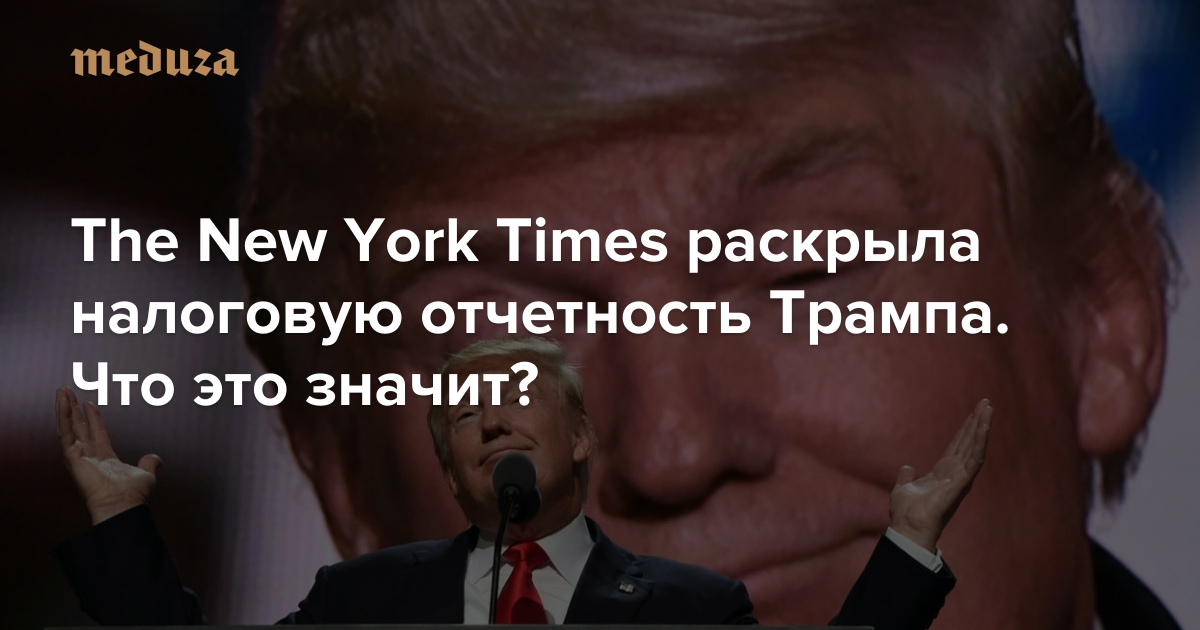1 октября газета The New York Times нанесла самый серьезный удар по предвыборной кампании Дональда Трампа, опубликовав его налоговую отчетность 1995 года. Из документа следует, что Трамп имел законное основание не платить налоги последние 18 лет; при этом публикация таких сведений может обернуться для NYT уголовным преследованием. «Медуза» рассказывает, что означает эта история.