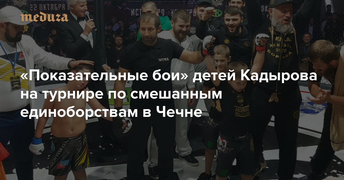 «Показательные бои» детей на турнире по смешанным единоборствам в Чечне Сыновья Кадырова на глазах у отца победили соперников