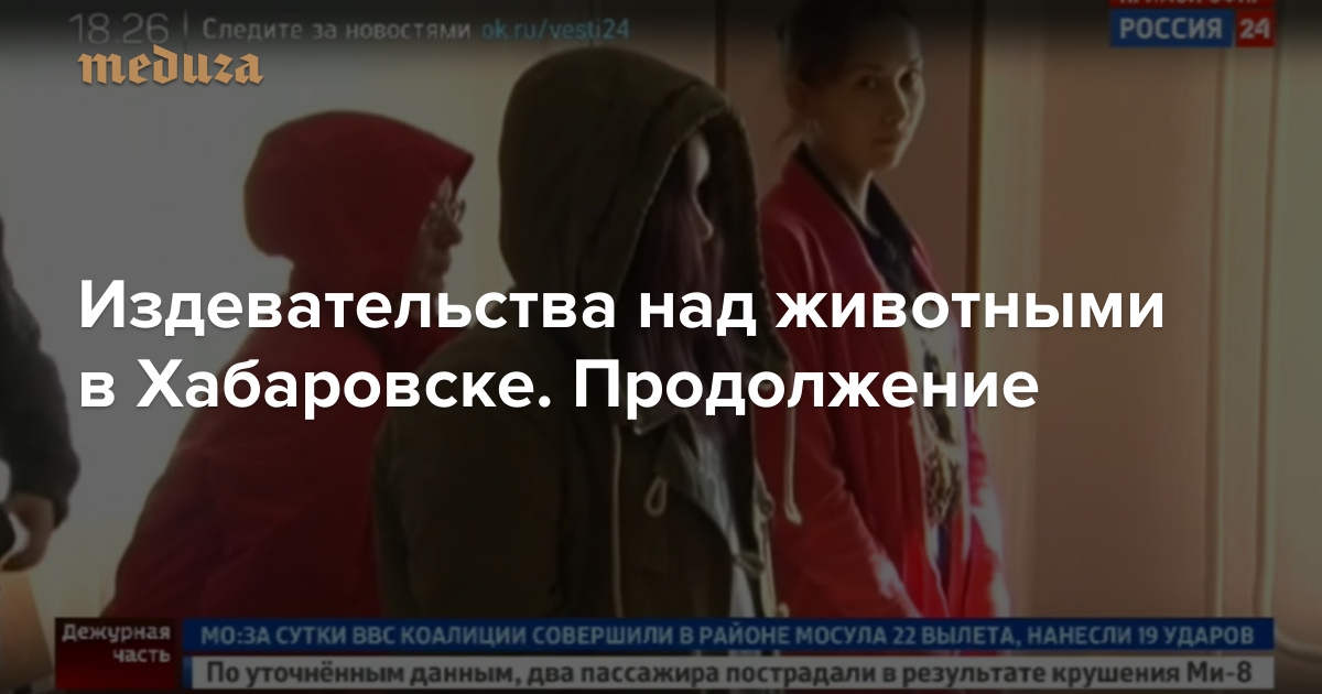 В понедельник, 24 октября, в Хабаровске прошел «народный сход» с требованием привлечь к ответственности 21-летнюю Алину Орлову и 19-летнюю (по другим сведениям — 17-летнюю) Алену Савченко, подозреваемых в жестоких убийствах домашних животных — «Медуза» рассказывала об этом 19 октября. Пользователи «Двача», раскрывшие личности девушек, считают, что к издевательствам над животными причастны еще как минимум два человека. «Медуза» рассказывает о том, как развивается эта история.