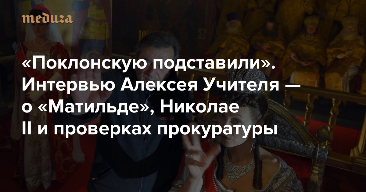 В начале ноября депутат Госдумы Наталья Поклонская направила в прокуратуру заявление с просьбой проверить фильм Алексея Учителя «Матильда», премьера которого состоится только в марте 2017 года. Поклонская получила несколько жалоб на картину, в том числе от движения «Царский крест». В «Матильде» рассказывается об отношениях наследника царского престола Николая с балериной Матильдой Кшесинской — жалобы вызвал сам сюжет, так как расстрелянный император и его семья причислены к лику святых. На сайте Change.org была создана петиция о запрете выхода фильма в прокат — ее подписали более 13 тысяч человек. Однако прокуратура уже проверяла картину Учителя весной 2016 года и никаких претензий не предъявила. По просьбе «Медузы» журналист Мария Кувшинова поговорила с Алексеем Учителем о том, как продвигается работа над картиной на фоне проверок.