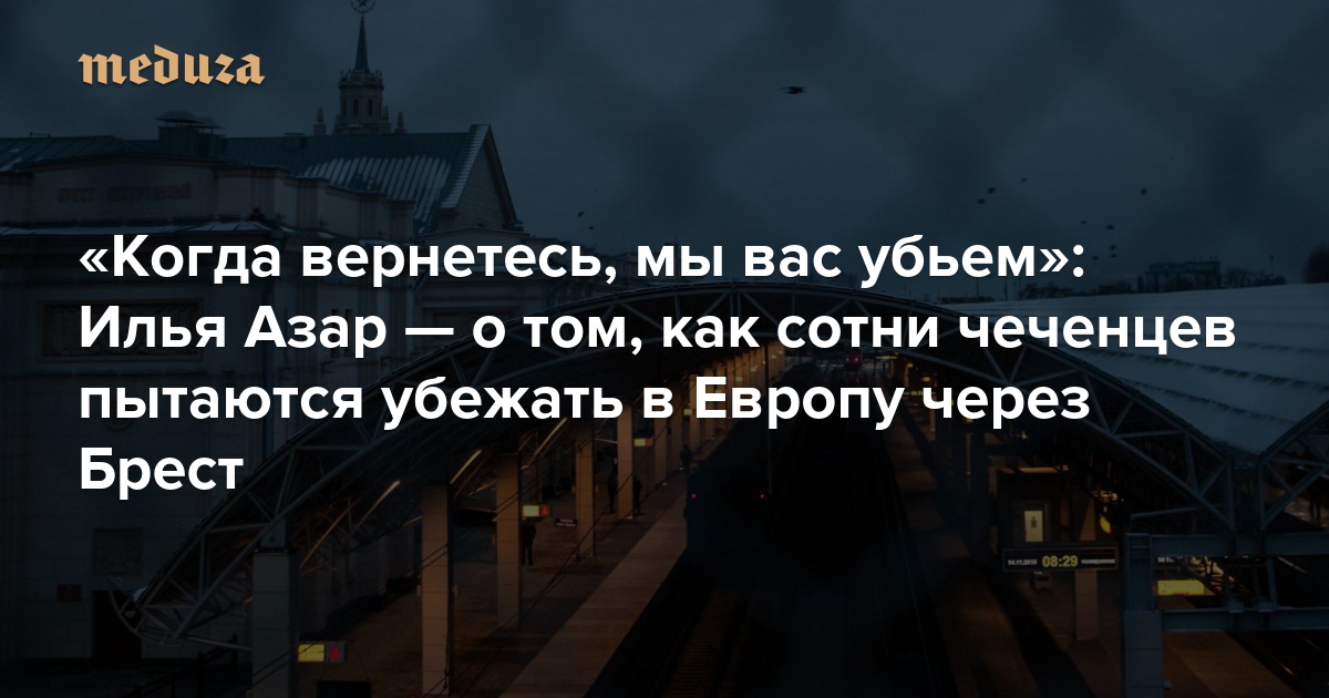 Каждый день несколько сотен чеченцев садятся в электричку в белорусском Бресте и едут через границу в польский Тересполь. Польские власти пропускают не больше двух семей в день, но чеченцы пробуют снова и снова, хотя для этого многим из них приходится жить на вокзале. Глава Чечни Рамзан Кадыров уже заявил, что люди в Бресте — это не беженцы, а «заложники спецслужб европейских стран, которые соблазняют чеченцев рассказами о райской жизни». Спецкор «Медузы» Илья Азар отправился в Брест, чтобы узнать, что там происходит, — и записал монологи нескольких беженцев о том, почему они пытаются уехать в Европу и как в Чечне притесняют, пытают и убивают людей.