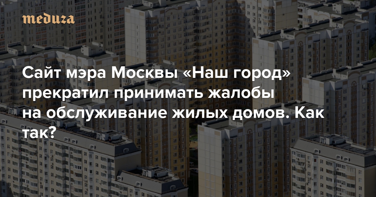 Сайт мэра Москвы «Наш город» прекратил принимать жалобы на обслуживание жилых домов. Как так?