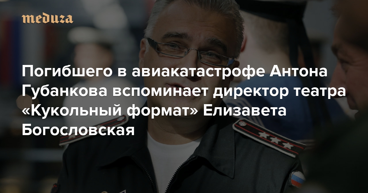 Среди пассажиров Ту-154, разбившегося в Черном море 25 декабря, был Антон Губанков — директор департамента культуры министерства обороны РФ. Он сопровождал ансамбль Александрова, который должен был дать концерт в Сирии. По просьбе «Медузы» о проработавшем долгое время в Санкт-Петербурге Антоне Губанкове рассказывает директор петербургского театра «Кукольный формат» Елизавета Богословская.