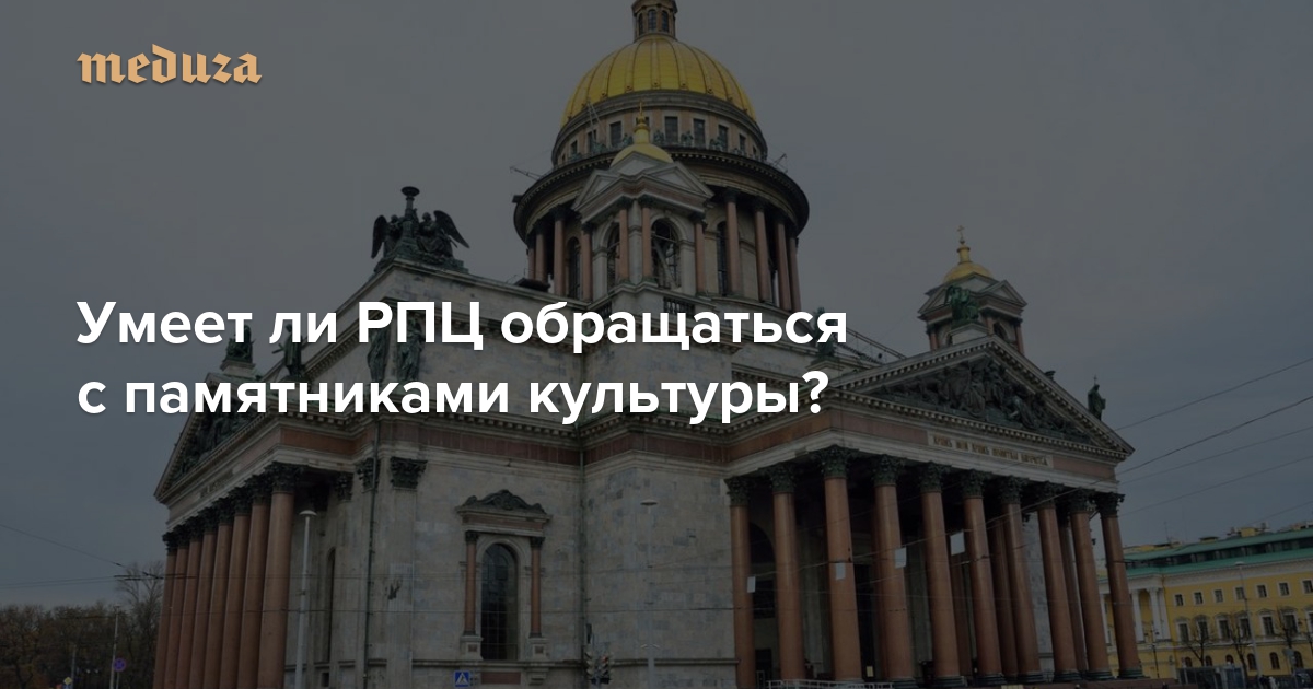 Власти Санкт-Петербурга решили передать Исаакиевский собор в собственность Русской православной церкви. Губернатор Петербурга Георгий Полтавченко заверил, что собор сохранит свою «музейно-просветительскую функцию», а в РПЦ отметили, что смена собственника «позволит усилить мировое значение собора как музея и святыни» — однако у некоторых горожан происходящее вызывает беспокойство. «Исаакиевский собор и до революции (когда церковь не была отделена от государства) не принадлежал ни епархии, ни даже синоду. Он находился в подчинении министра внутренних дел», — напомнил историк Лев Лурье. По словам ученого, непонятно, как епархия планирует содержать «гигантский Исаакий, заполненный реликвиями». «Медуза» попросила архитектора и реставратора Александра Попова рассказать, что происходит с памятниками культуры после того, как они переходят в ведение РПЦ.