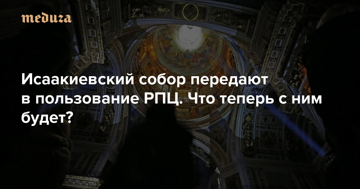 В четверг, 12 января, стало известно, что до марта 2019 года здание Исаакиевского собора в Санкт-Петербурге на 49 лет передадут в безвозмездное пользование Русской православной церкви. Сейчас собор является частью одноименного музейного комплекса. Власти города уверяют, что музейная функция сохранится; представители РПЦ обещают «стряхнуть музейную пыль» с собора. В самом музейном комплексе предсказывают скорую смерть экспозиции, а гражданские активисты и политики намереваются защитить памятник архитектуры от передачи РПЦ. «Медуза» рассказывает, как развиваются события вокруг Исаакиевского собора.