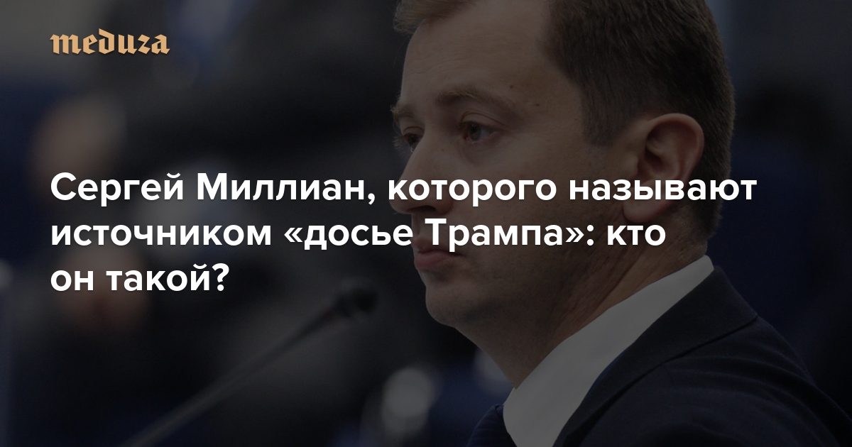 В начале января издание Buzzfeed опубликовало «досье» Дональда Трампа — сборник документов, в котором, в частности, рассказывалось о связях 45-го президента США с российскими спецслужбами. В частности, в «досье» утверждалось, что в распоряжении ФСБ есть видеозапись, компрометирующая Трампа. 24 января газета The Wall Street Journal объявила, что информацию о компромате авторам «досье» передал некто Сергей Миллиан — американец белорусского происхождения, тесно сотрудничавший с Трампом на протяжении почти 10 лет. «Медуза» рассказывает, что известно об этом человеке.