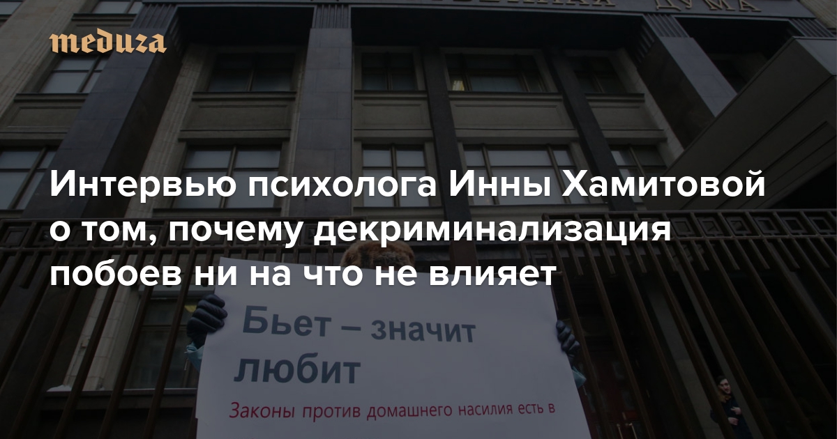 «Полиция, к сожалению, не играет спасительную роль» Интервью психолога Инны Хамитовой о том, почему декриминализация побоев ни на что не влияет