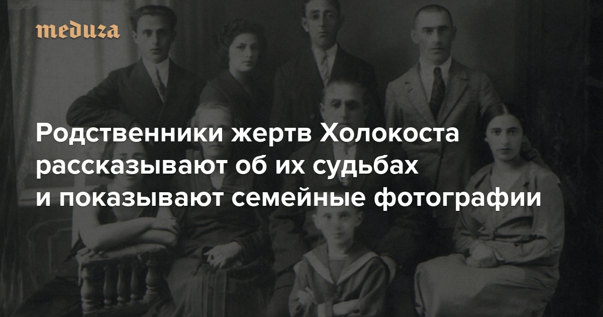 27 января — День памяти жертв Холокоста. Во время Второй мировой войны нацистами и их пособниками на оккупированных территориях были убиты около шести миллионов евреев. О многих из них до сих пор почти ничего неизвестно. «Медуза» публикует монологи трех человек, чьи родственники погибли в Холокосте, — они рассказывают о судьбах погибших и пострадавших и о том, как искали сведения. Кроме того, мы составили инструкцию для тех, кто хочет больше узнать о еврейских родственниках, пострадавших во время войны.
