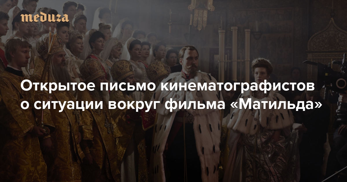 Новый фильм Алексея Учителя «Матильда», еще не выйдя в свет, стал объектом критики со стороны иерархов Русской православной церкви и чиновников: так, епископ Егорьевский Тихон (Шевкунов) назвал картину, рассказывающую романтическую историю из жизни Николая II, «клеветой», а депутат Наталья Поклонская уже дважды попросила Генпрокуратуру провести проверку фильма. «Медуза» публикует открытое письмо более чем сорока членов Киносоюза о ситуации вокруг «Матильды».