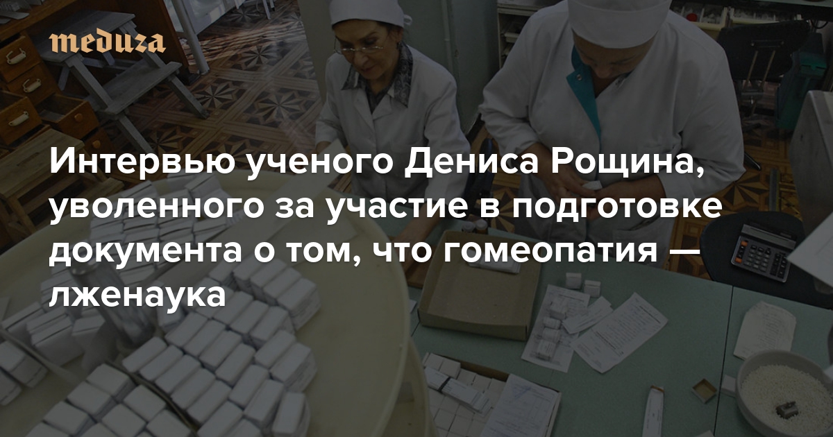 Во вторник, 7 февраля, был уволен ведущий научный сотрудник Центрального научно-исследовательского института организации и информатизации здравоохранения Денис Рощин. Ученый участвовал в подготовке меморандума о лженаучности гомеопатии — комиссия по борьбе со лженаукой при президиуме РАН выпустила документ 6 февраля. «Медуза» поговорила с Денисом Рощиным; он утверждает, что его уволили на основании заявления, которого он не писал, а реальной причиной увольнения Рощин считает действия «гомеопатического лобби».