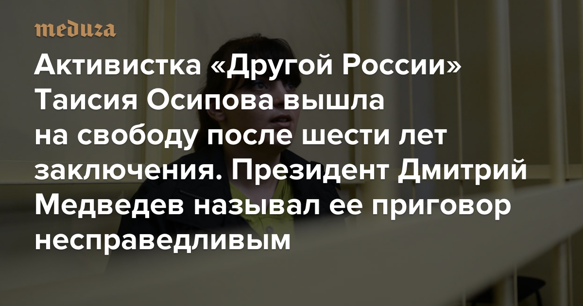 Активистка «Другой России» Таисия Осипова вышла на свободу после шести лет заключения Президент Дмитрий Медведев называл ее приговор несправедливым
