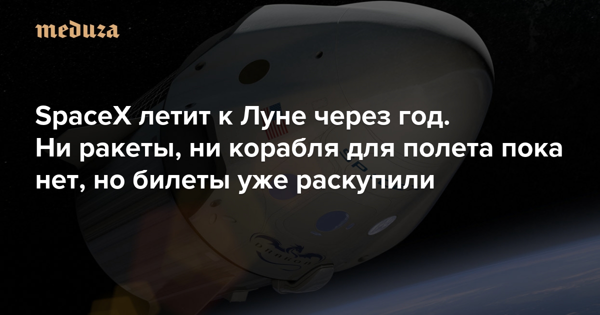 Частная космическая компания SpaceX 27 февраля объявила об открытии туристических полетов к Луне. Первые два туриста, которые уже заплатили за путешествие, полетят к Луне в 2018 году; при этом у SpaceX еще не готов ни космический корабль для пилотируемых полетов, ни ракета, способная отправить его к спутнику Земли. «Медуза» рассказывает, что нужно знать о лунной программе SpaceX — и кто еще собирается лететь к Луне.