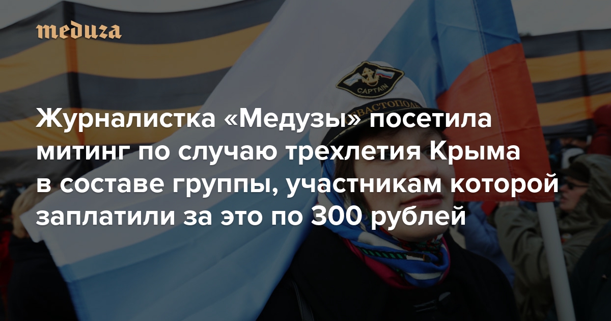 Отношусь к этому как к работе Журналистка «Медузы» посетила митинг по случаю трехлетия Крыма в составе группы, участникам которой заплатили за это по 300 рублей