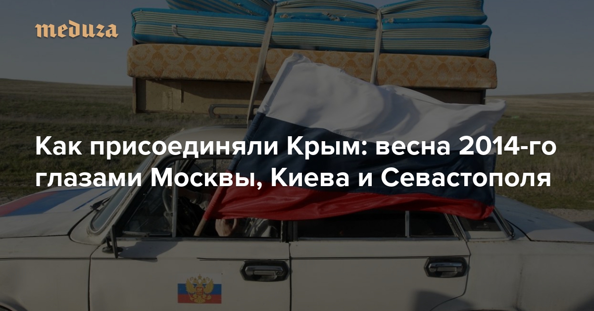 21 марта 2014 года Владимир Путин подписал закон, формально закрепивший вход Крыма в состав России. На то, чтобы присоединить новую территорию, Кремлю и пророссийским силам в Крыму понадобилось меньше месяца. Ни Украина, ни большинство стран мира это присоединение по-прежнему не признают и считают аннексией. «Медуза» поговорила более чем с двумя десятками участников событий в самом Крыму и по обе стороны российско-украинской границы — и составила устную хронику того, как Крым становился частью России и как в это время чувствовали себя те, кто собственными руками творил историю.