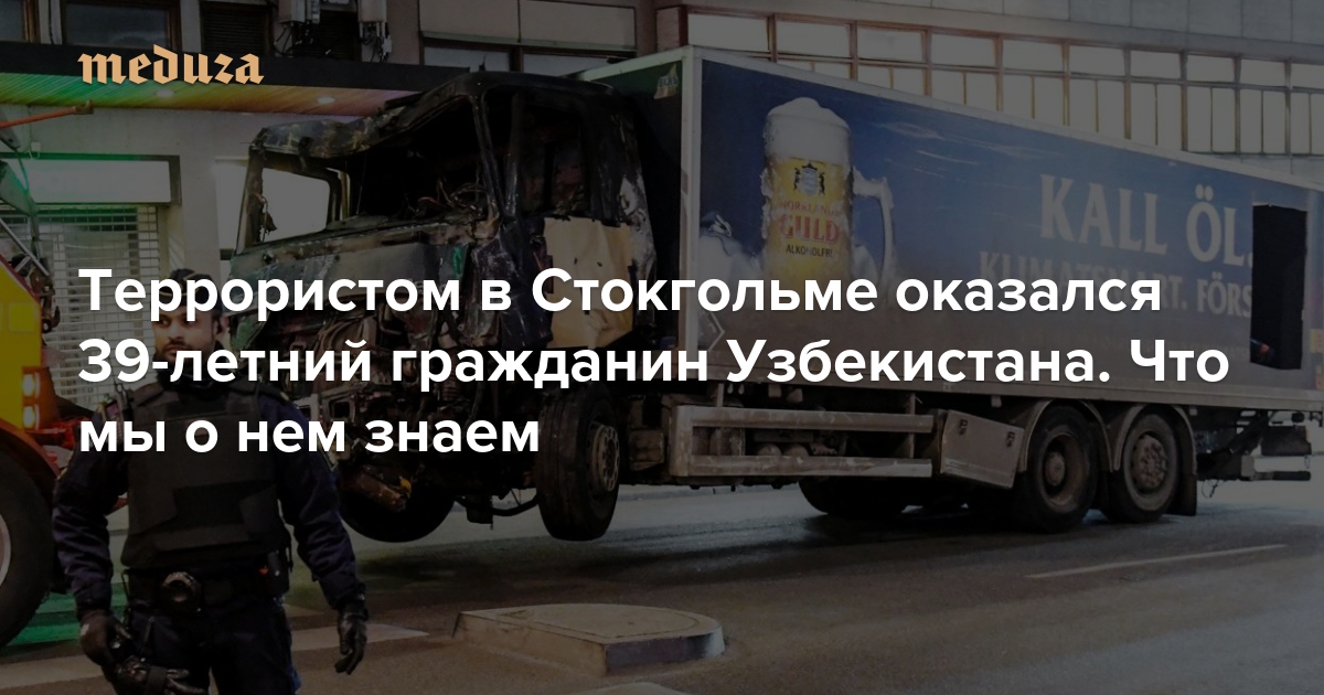 7 апреля днем в центре Стокгольма человек на угнанном грузовике выехал на пешеходную улицу и сбил около 20 человек, после чего врезался в здание универмага. Погибли четыре человека, как минимум 15 получили ранения, четверо находятся в тяжелом состоянии. Власти признали случившееся терактом. Вечером того же дня был задержан подозреваемый — 39-летний выходец из Узбекистана. «Медуза» рассказывает, что известно о нем спустя сутки после теракта.