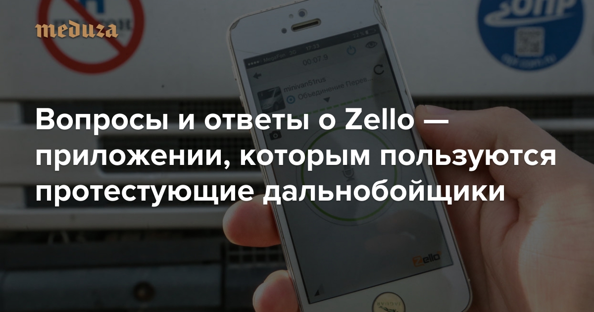 Вечером 12 апреля Роскомнадзор начал блокировку приложения Zello — оно имитирует работу рации и позволяет обмениваться голосовыми сообщениями в интернете. Zello популярно у дальнобойщиков, которые используют приложение, в частности, для координации протестных акций против системы «Платон». В компании, впрочем, считают, что блокировка связана не с акцией водителей, а с отказом Zello выполнять требования Роскомнадзора. «Медуза» рассказывает о блокировке приложения Zello в вопросах и ответах.